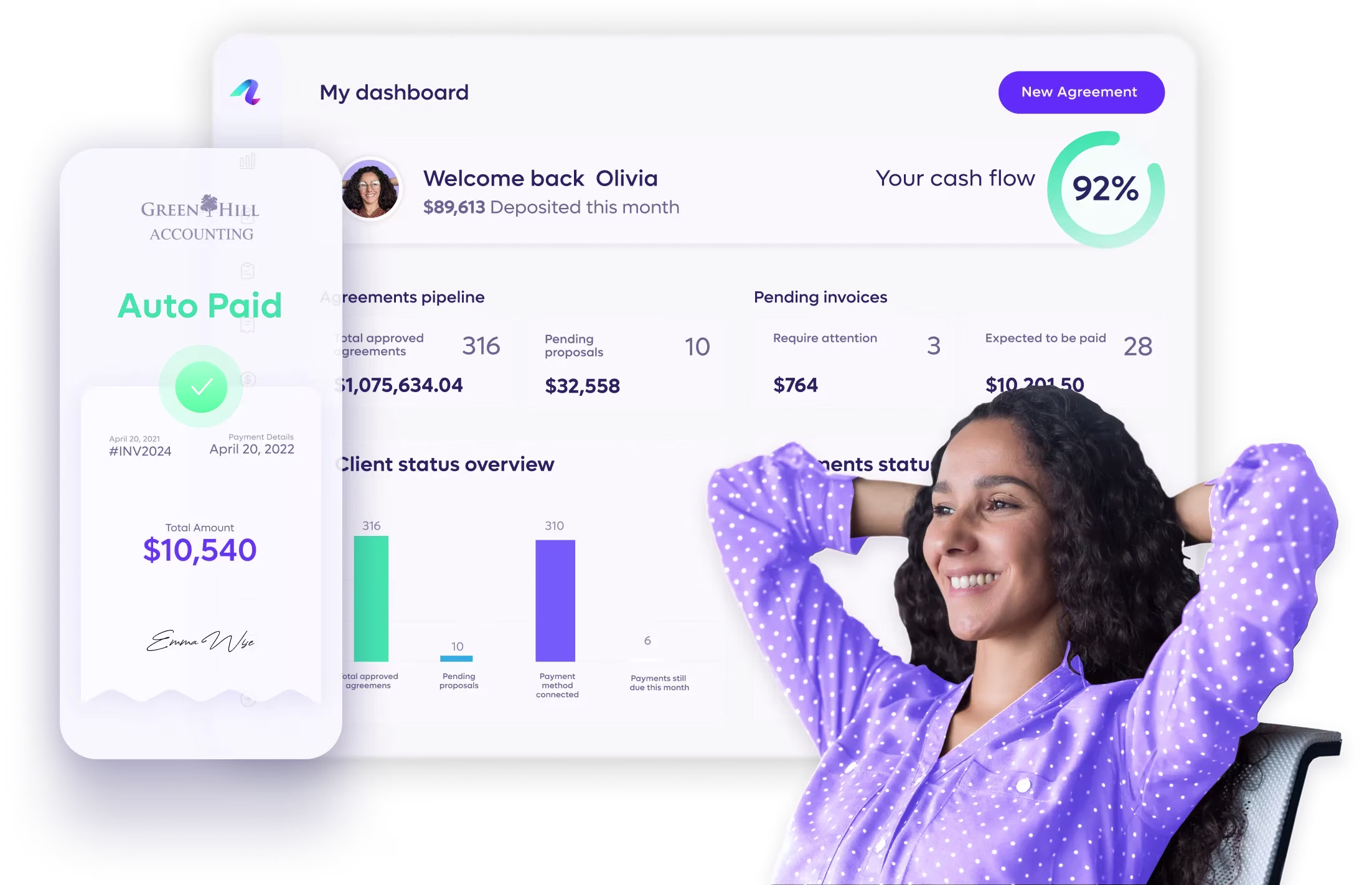 Provide clients with a dedicated portal to access and manage their agreements, invoices and payments.