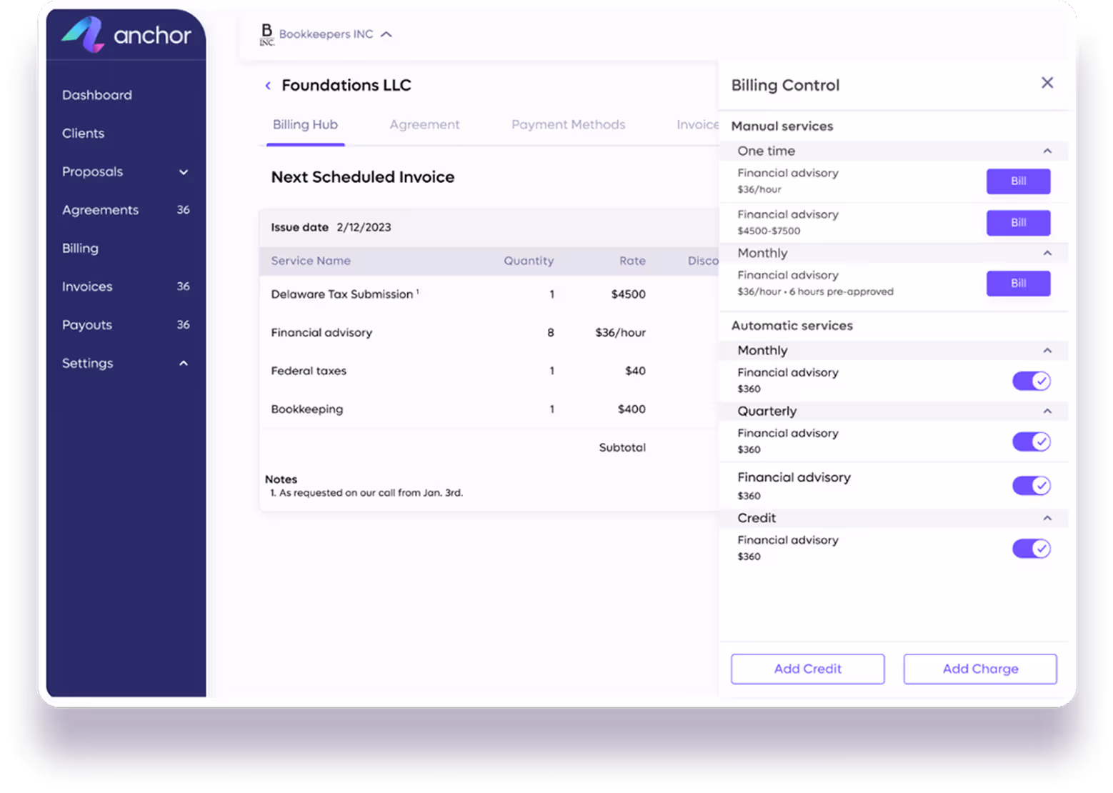Streamline proposals, invoicing, payments, and client engagement from start to finish.